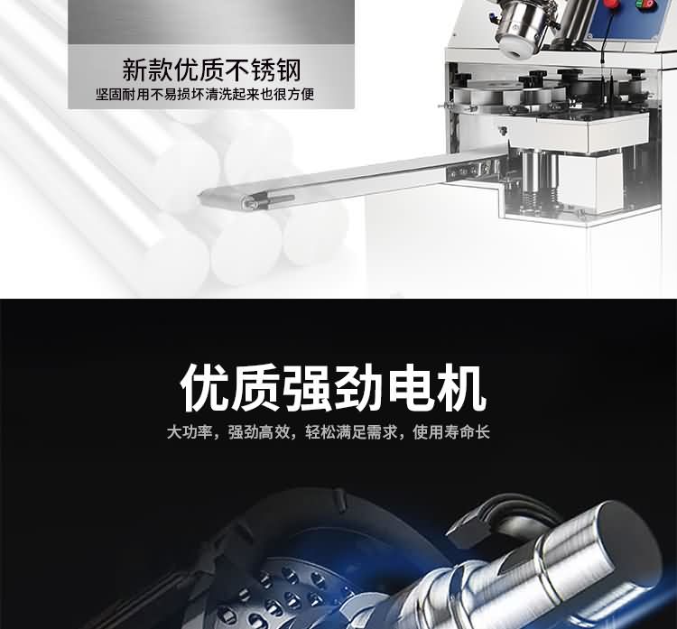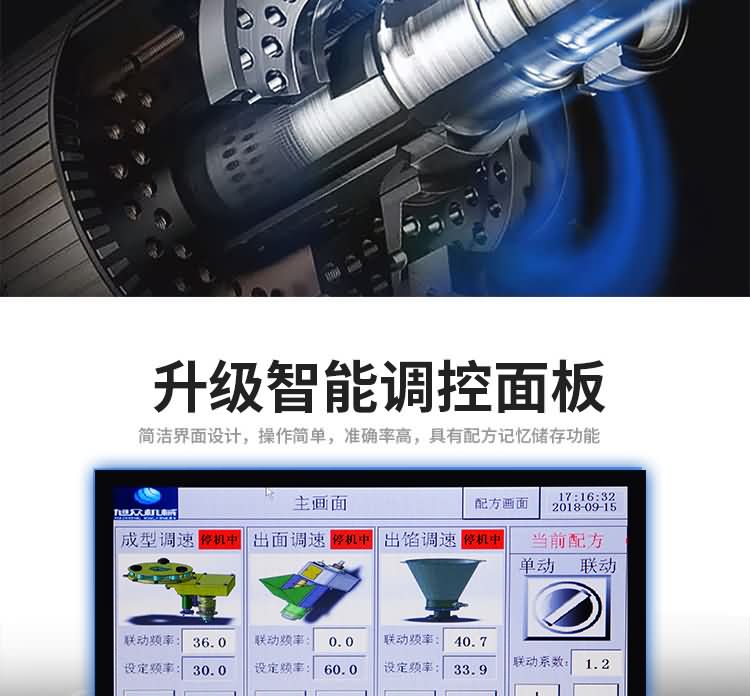 ◆出餡系統結構密閉性好,注餡均勻流暢,半臥式傾斜裝配的餡管完善了立式出料系統餡料容易成團下掉而造成包子餡料不均勻或出現空包子的現象。
