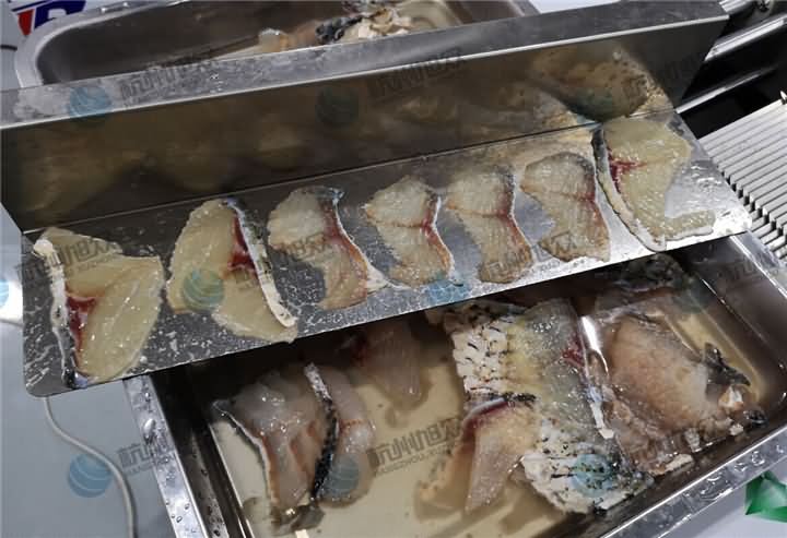 前些天有客戶問能不能把全自動切魚片機分別切的2mm和2.5mm規格的魚片拍個圖片給他看看,這樣他就能知道自己要定的是多厚規格,于是小編給他安排上了,如圖所示: