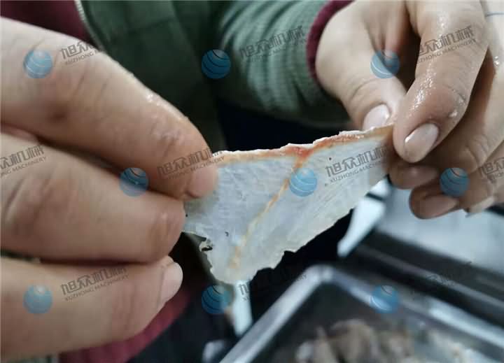 斜切魚片機(jī)操作非常的簡單,這不是騙人的哦!前天有客戶來試切魚片機(jī),剛好試機(jī)師傅再試另一臺包子機(jī),為了減輕同事們的壓力,于是作為攝影師的我親自上陣,因?yàn)槲遗倪^很多視頻,看過無數(shù)遍師傅們的操作過程,于是我便先拿起客戶帶來的黑魚,去完鱗分半的那種,不過發(fā)現(xiàn)大的魚骨沒有剔除,對于第一次接手的我來說,剃魚大骨也是需要一門技巧,花了些時間將魚骨剃掉后,放在送料板上放點(diǎn)水潤滑下,送入魚槽中,開啟開關(guān)等個十幾秒魚片就切好了。客戶看了效果后帶回去給大廚看了之后,今天就轉(zhuǎn)賬定購設(shè)備了。他說【不光是切魚片機(jī)切出來的魚片效果好,還有一個原因就是操作簡單,他也知道我第一次上手試切魚片機(jī),在沒人幫助下就能完成,這樣以后如果來新人也能很快的上手】