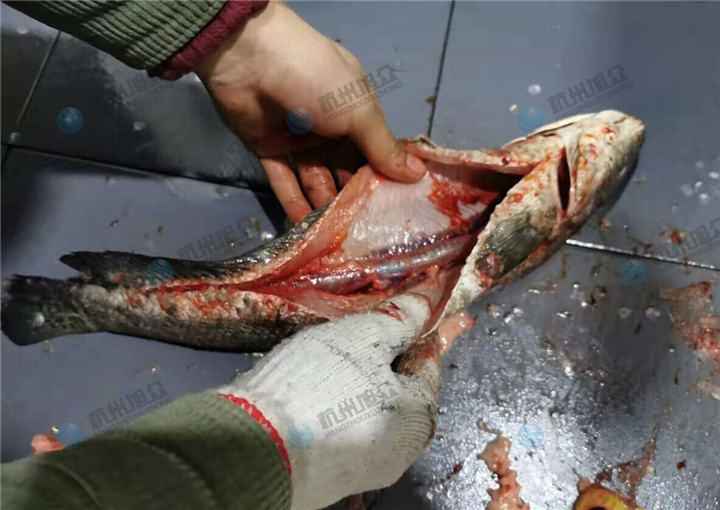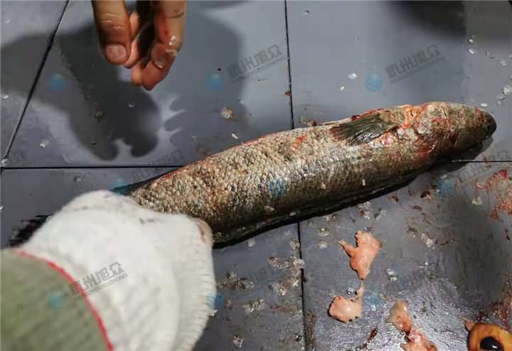 試機中的設備是XZ-018開肚去鱗殺魚機,它沒有去內臟的功能,內臟是人員手工自己掏出來的,開肚那一刀的刀口非常平整,黑魚魚鱗本身是很難刮掉的,所以還是會有部分魚鱗沒有去干凈,需要人工用刀背稍微帶一下,魚鱗就會脫落掉的。想知道殺魚機好不好用?歡迎來電400-885-2117咨詢殺魚機設備!