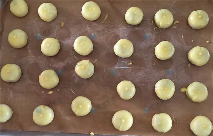 蛋黃酥是由小麥、黃油、蛋黃等做成的傳統中式糕點。近年來隨著用料的不斷升級,蛋黃酥逐漸成為一款網紅產品。這么熱銷的特產自然旭眾機械也要插入一腳,通過不斷研發生產,終于由酥餅機改裝定制成蛋黃酥生產線,那么這一條生產線究竟由什么機器搭配的呢?