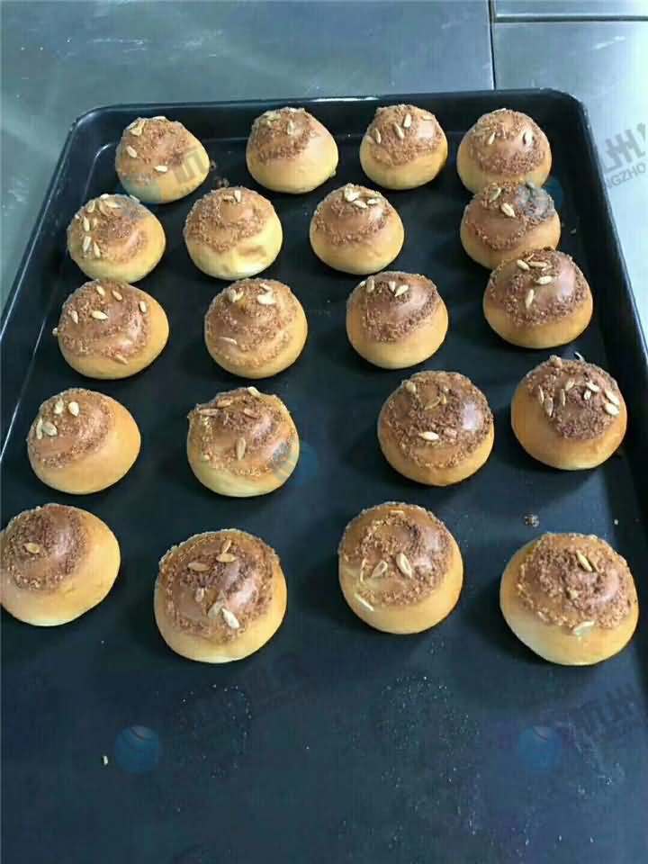 酥餅機(jī)做面包啦!當(dāng)然并不是所有面包房里的面包都可以用酥餅機(jī)做哦!我們是根據(jù)客戶的物料及做法來推薦的設(shè)備,客戶提出只需要成型一個個圓形,后期添加花生等工藝人工自己弄弄便可,于是思來想去還是多功能酥餅機(jī)可以達(dá)到這個要求,客戶一聽說有機(jī)器可以做到便帶著自己的物料來到現(xiàn)場,至于是什么物料客戶具體沒有說我也不敢問,經(jīng)由酥餅機(jī)做成面包坯,然后客戶再添加了些東西后,經(jīng)過烤箱烘烤后面包房常見的面包就出來了!