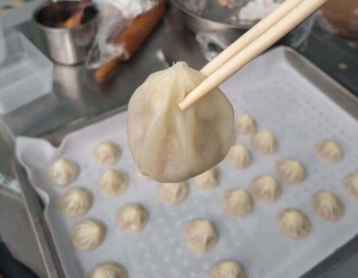 眼見不一定為實,就如還沒有蒸之前的包子,你不去摸是看不出它的皮有多薄,蒸完后的包子皮薄至能看出里面的湯汁分量,不信你看看蒸之前的包子: