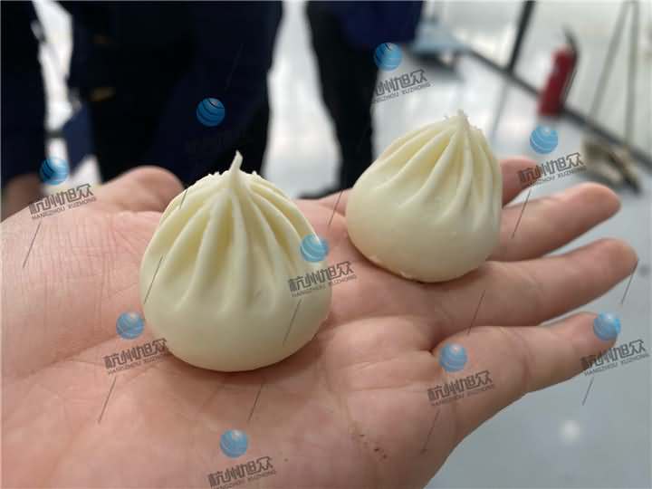 兩組包子成品都是由XZ-87全自動包子機生產(chǎn)的14克和18克左右的小籠包,圖一包子皮薄,圖二看起來明顯比圖一的面皮要厚一點,各個生產(chǎn)的包子面皮比例均勻,不切開在沒有蒸之前是看不出有什么區(qū)別,等兩組都做好后,圖二因為是發(fā)面小籠包,所以需要拿去醒發(fā)后再蒸熟,而圖一死面小籠包直接拿去蒸七八分鐘就差不多就好了。想了解包子機撥打4008852117預(yù)約上門考察!