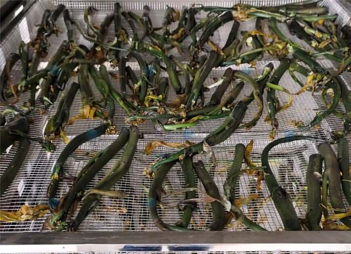 菜苔烘干選用旭眾空氣能烘干機,烘干菜苔前后對比效果: