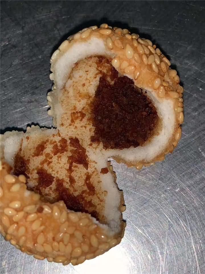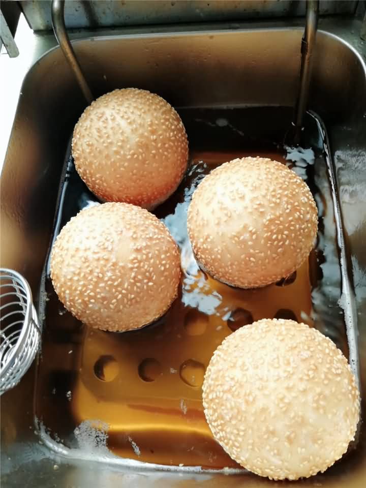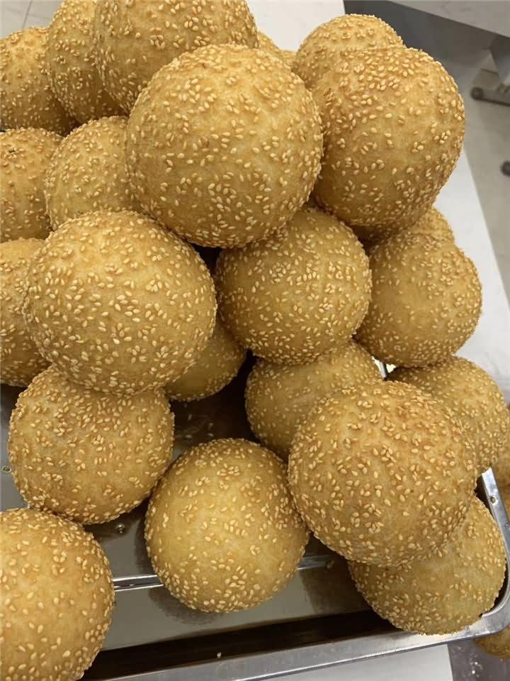 剛剛炸出來的麻圓成色非常好!麻圓沒炸之前都是用全自動湯圓機自動包餡成型,至于后期炸出來的麻圓效果,那就是屬于個人技術問題,如果沒有技術的話可以考慮購買湯圓機,我們將面粉提供做麻圓的工藝配方教學哦!