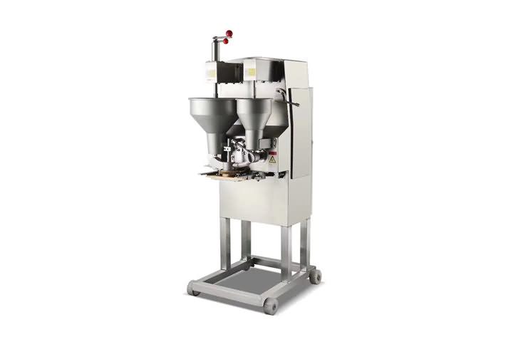 仿手工(變頻挖式)成型機是一款完全模擬丸子手工用匙子成型的設備,完全解決傳統切刀式成型機那種不可避免的高密度和外表皮粗糙問題。做出的丸子具有密度小、圓度好、外表皮光滑的特點,特別在做貢丸和牛肉丸這些有肉筋的丸子時是目前市面上接近手工口感的丸子成型機。