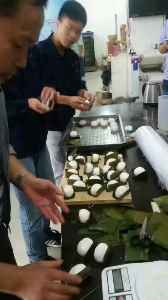 買湯圓機做葉兒粑咯!那么哪款湯圓機型號比較適合呢?湯圓機做出來的成品客戶還需要人工放置葉兒上,所以帶自動擺盤的湯圓機可以不用考慮,直接選擇VFD-4000A湯圓機自動包餡搓圓成型后,員工在旁接成品再包裝下就可以了。