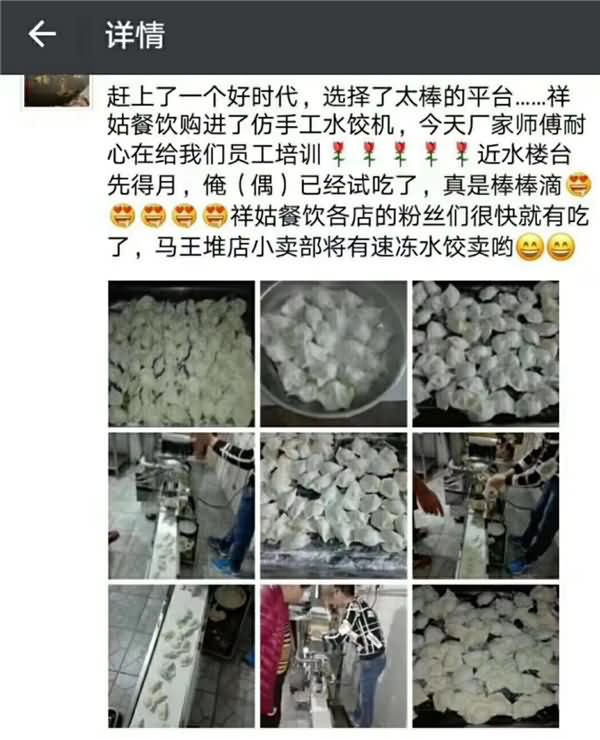客戶用餃子機(jī)心得【客戶說一句,頂我們說百句】。事實(shí)勝于雄辯;旭眾機(jī)械為您的創(chuàng)業(yè)之路保駕護(hù)航!!!想要詳細(xì)了解餃子機(jī)的新老客戶朋友們歡迎致電400-885-2117咨詢客服!