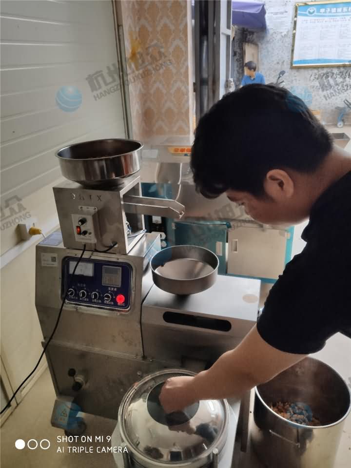 旭眾榨油機有小型也有大型,根據客戶產量需求及價格方面的考慮,XZ-Z505H小型立式榨油機也不失為一種選擇,只不過沒有師傅上門調試服務,不過榨油機操作非常簡單,可與師傅視頻一對一的指導培訓即可,客戶剛剛學會操作榨油機熟榨花生油的現場: